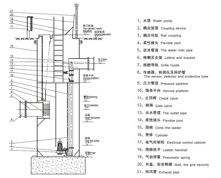 TQPS型一體化預(yù)制泵站是有潛水泵、泵站設(shè)備、除污格柵設(shè)備、控制系統(tǒng)及遠(yuǎn)程監(jiān)控系統(tǒng)組成的一體化的設(shè)備。泵站建設(shè)周期極短,安裝簡便,質(zhì)量可靠,工程施工量少,占地面積少,自動化程度高,是傳統(tǒng)混凝土泵站的較佳替代品,集成度高,容積優(yōu)化是顯著的特點(diǎn)。